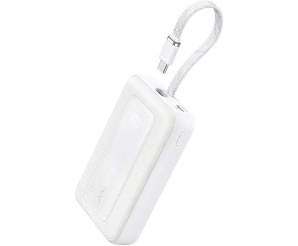 Anker Power Bank (10K, 30W, Built-In USB-C Cable) White