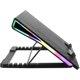 Tanak i pametan dizajn sistema za hlađenje sa RGB LED svjetlom. Ventilator visokih performansi i izuzetno tih ugrađen ventilator koji pomaže u raspršivanju toplog vazduha ispod laptopa kako bi se smanjila ukupna temperatura vašeg sistema. Omogućiće stabilan rad i duži vijek trajanja baterije. Izuzetno čvrsta konstrukcija podloge za hlađenje kako bi izdržala bilo koju težinu ili pritisak. Izvor napajanja se lako podržava putem USB veze "plug-and-play" kao način samostalnog napajanja. Praktičan, pouzdan i udoban za nošenje. Nema potrebe za bilo kakvom instalacijom. Kompatibilan sa svim laptop računarima.