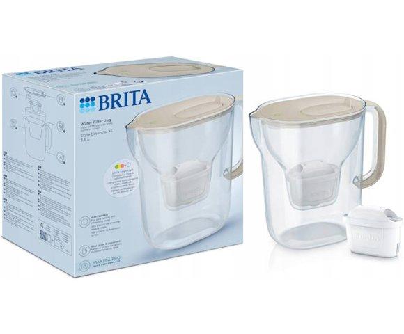 Brita Style XL Sand bokal sa filterom za vodu, Inovativno svjetlo BRITA Smart Light, Čist, skladan dizajn, Poklopac se otvara vrhom prsta, MAXTRA PRO filter, 3,6 litara (2,3 litre filtrirane vode), Dimenzije: 25,9 x 27,3 x 13,5 cm (Š x V x D)