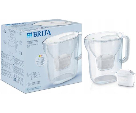 Brita Style XL White bokal sa filterom za vodu, Inovativno svjetlo BRITA Smart Light, Čist, skladan dizajn, Poklopac se otvara vrhom prsta, MAXTRA PRO filter, 3,6 litara (2,3 litre filtrirane vode), Dimenzije: 25,9 x 27,3 x 13,5 cm (Š x V x D)