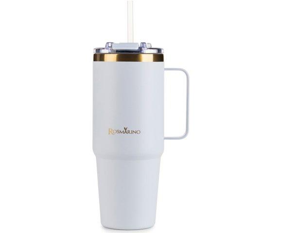 Rosmarino MegaCup 870ml Plavo-zlatna termos šolja ∙ Održava hladnoću do 11h ∙ Održava toplotu do 7h ∙ Praktičan poklopac sa slamkom ∙ Dvoslojni zid od nerđajućeg čelika