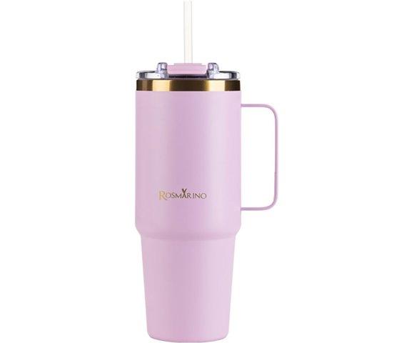 Rosmarino MegaCup 870ml Roza-Zlatna termos šolja ∙ Održava hladnoću do 11h ∙ Održava toplotu do 7h ∙ Praktičan poklopac sa slamkom ∙ Dvoslojni zid od nerđajućeg čelika