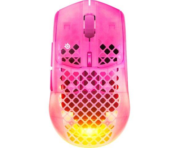 SteelSeries Aerox 3 Wireless Gen 2 Magenta Haze gaming miš ∙ RGB osvjetljenje ∙ 68g težina ∙ Trajanje baterije do 200h ∙ Micro IP54 tasteri ∙ TrueMove Air optički senzor