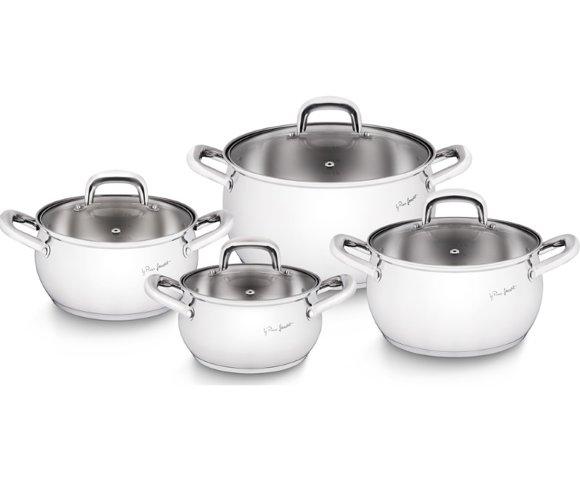 | Fizičke karakteristike | Boja: Metalik Dimenzije: 160mm x 95mm, 180mm x 105mm, 200mm x 115mm, 240mm x 135mm Pakovanje: 4x Lonac sa poklopcem Materijal: Čelik, Stakleni poklopac Zapremina: 1.2l (posuda), 2.4l (posuda), 3.6l (posuda), 6.2l (posuda) | |