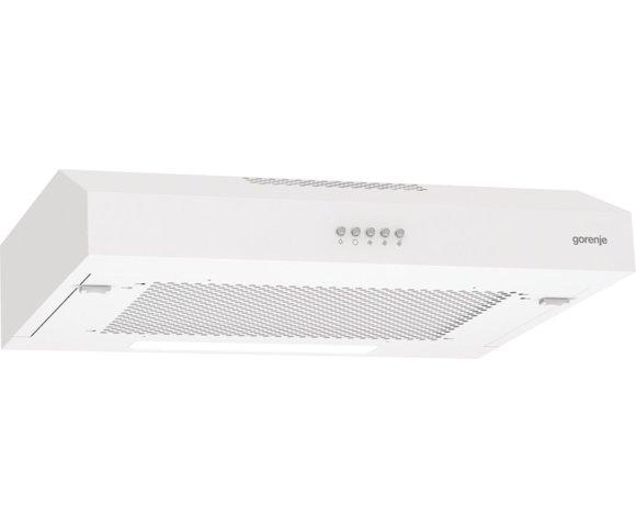 Gorenje WHU629EW/S (DU611W) Potpultni kuhinjski aspirator Maksimalna buka: 64 dB(A)re1pW Maksimalni protok vazduha prilikom izduvavanja: 200 m³/h Energetski razred: B Essential Line Dimenzije aparata (šxvxd): 59,6 × 12,5 × 46,8 cm