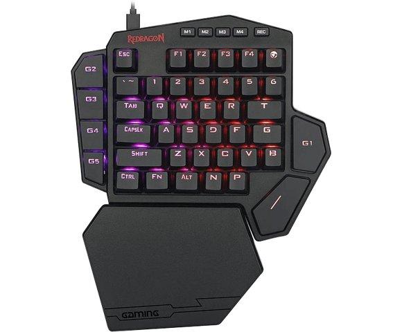 Redragon Diti K585RGB mehanička gejmerska tastatura namenjena korišćenju jednom rukom. Ima podesivo RGB osvetljenje i naslon za ruke koji po želji možete ukloniti.