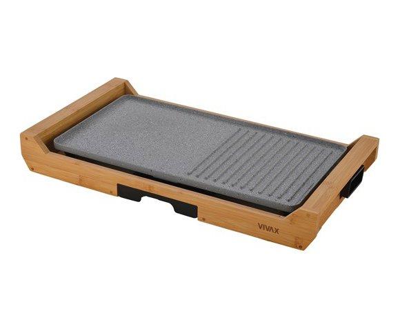 VIVAX HOME električni roštilj EG-4020B Snaga 1800W, dimenzije neljepljive površine za pečenje 43x23 cm, kombinacija rebraste i glatke površine,termostat za podesivu temperaturu pečenja, odvojiva ploča za pečenje za lakše čišćenje,odvojiva posuda za masnoću, kućište od bambusa hladno na dodir, mramorni premaz
