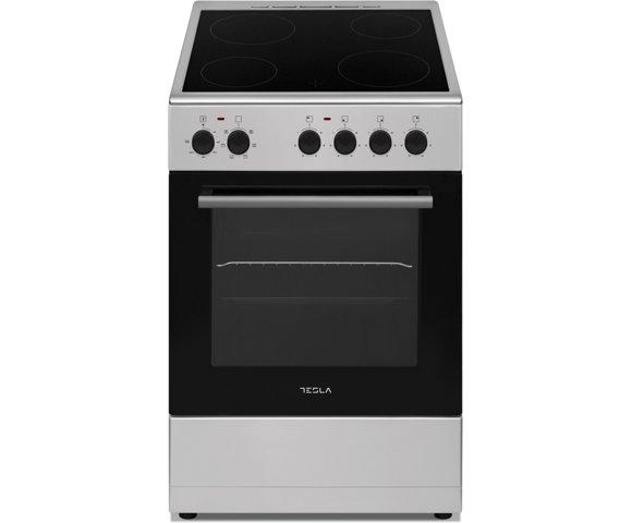 Tesla CV5400SX električni šporet, staklo-keramička ploča, Gril sa ventilatorom, 6 funkcija, Zapremina rerne: 43 l, Čišćenje parom, Snaga: 7600 W, Težina: 42 kg, Dimnezije: 50x55x83 (inox)