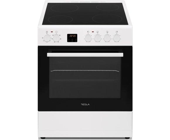 Tesla CV6400SW električni šporet, staklokeramička ploča, 6 funkcija, Gril sa ventilatorom, Kapacitet rerne: 56l, Čišćenje parom, Snaga: 8100W, Dimenzije: 60 cm x 83 cm x 60 cm, Težina: 43,7 kg (bijela)
