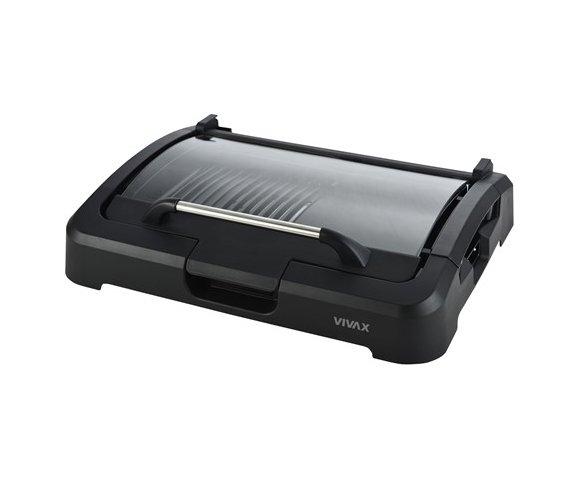 Vivax električni grill EG-4030RC Snaga 2000 W, povrsina za pecenje: 40 x 30 cm, nelepljiva površina, polaravna ploca, pola rebrasta, stakleni poklopac za ocuvanje hrane socnom itoplom