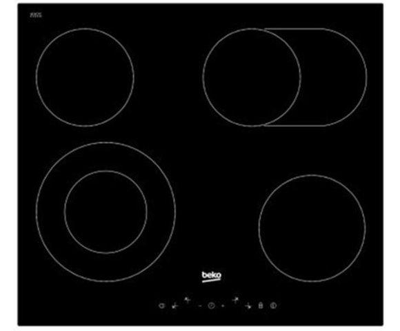 Beko Staklo-keramička ploča HIC 64403 T - Broj grejnih zona: 4 + 2 - Nezavisna staklokeramička ugradna ploča - Upravljanje: Senzorsko - 9 nivoa kuvanja po zoni - Tajmer - Funkcija pojačivača radi bržeg zagrevanja