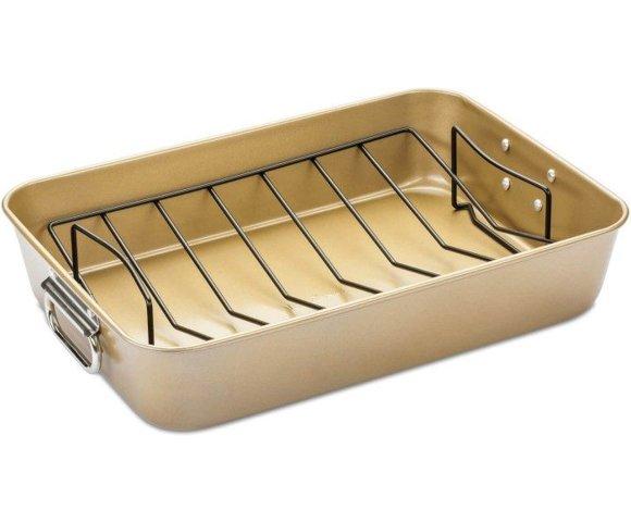 RosMarino Pekac s mrezicom Rosmarino Baker Gold 40x28 cm - Pekač za pečenje od karbonskog čelika - Neljepljivi mineralni premaz protiv prijanjanja - Odlična otpornost na veće temperature i do 240 °C - Idealan za pečenje piletine, ćuretine, govedine ili druge vrsta mesa - 3830065447871