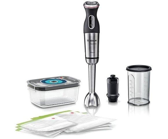 Bosch MaxoMixx (MS8CM61V1) Štapni mikser - Snaga 1000 W - Nerđajući čelik - Sistem vakumiranja - QuattroBlade Pro tehnologija - 12 podešavanja brzine i dodatna turbo funkcija - Automatsko mešanje pomoću vakuumskog sistema za odlaganje. Uživajte u svežoj hrani svaki dan