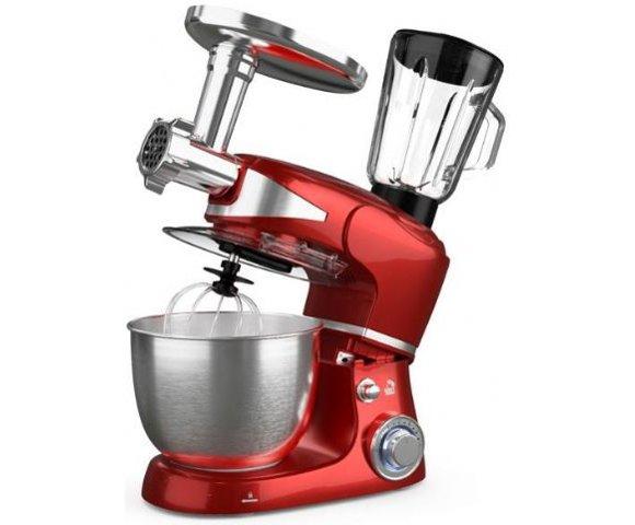 Model KR600RA Snaga:1000 W Crvena boja metalik Brzina-6 Turbo funkcija- Da Udica sa al-testom- Da Cinija i poklopac - Da Kapacitet cinije(L)- 5L nerdjajuceg celika Tegla 1.5 l Dodatna oprema- špatula, mašina za mljevenje mesa, blender, aparat za kobasice Visina proizvoda 391 mm Tezina 7,21kg