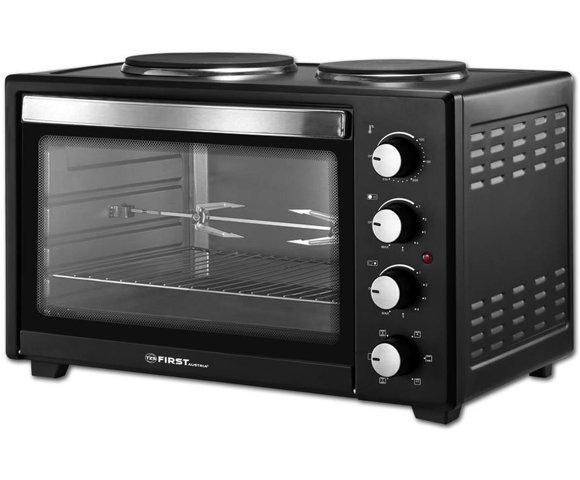 Kućni ljubimciFirst Mini šporet FA 5045 4 - Mogućnost istovremenog kuvanja i pečenja - Zapremina rerne od 45 l - 2 ringle za kuvanje sa odvojenim komandama - Izbor temperature od 100°C do 230°C - Unutrašnje osvetljenje rerne