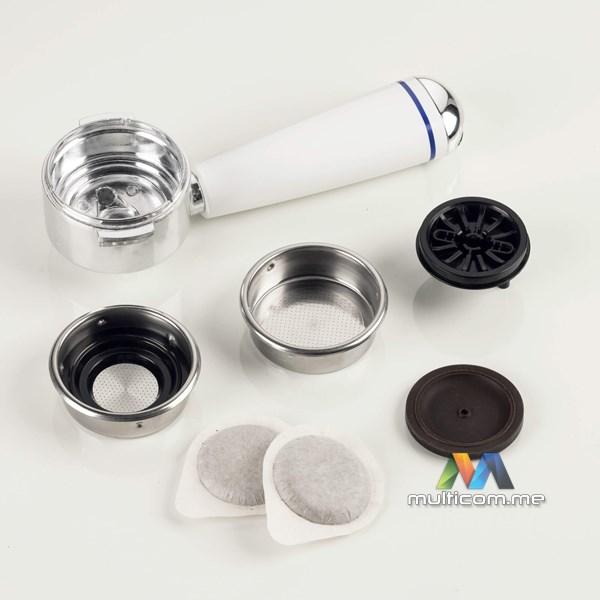 Aparat za espresso kafu "Positano" ima elegantan dizajn, obogaćen metalnim završnim detaljima. Sa svojih 850W snage, pritiskom od 15 bara, držačem filtera za kapsule i prah (1 i 2 šolje), uklonjivom tacnom i rezervoarom za vodu, aparat za espresso, koji je takođe i aparat za kafu i kapućino, omogućava vam da uživate u kremastim i intenzivnim kafama i kapućinima kod kuće, baš kao i u kafiću. Aparat za kafu "Positano" je takođe ekološki prihvatljiv aparat za kapsule.