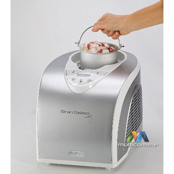 Gran Gelato Metal je Arieteov aparat za sladoled sa samohlađenjem, namijenjen za jednostavnu pripremu ukusnog, pravog domaćeg sladoleda. Kada se aparat uključi, procesi miješanja sastojaka i hlađenja započinju istovremeno, zahvaljujući unutrašnjem kompresoru koji zamrzava smjesu i pretvara je u kremasti, ukusan sladoled. Nema potrebe da posudu prethodno stavljate u zamrzivač – aparat za sladoled sam obavlja miješanje i zamrzavanje svih sastojaka. Posuda je uklonjiva, što vam omogućava da odmah izvadite svježe pripremljen sladoled i odmah započnete pravljenje novog ukusa.