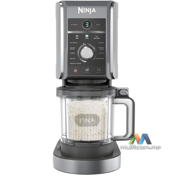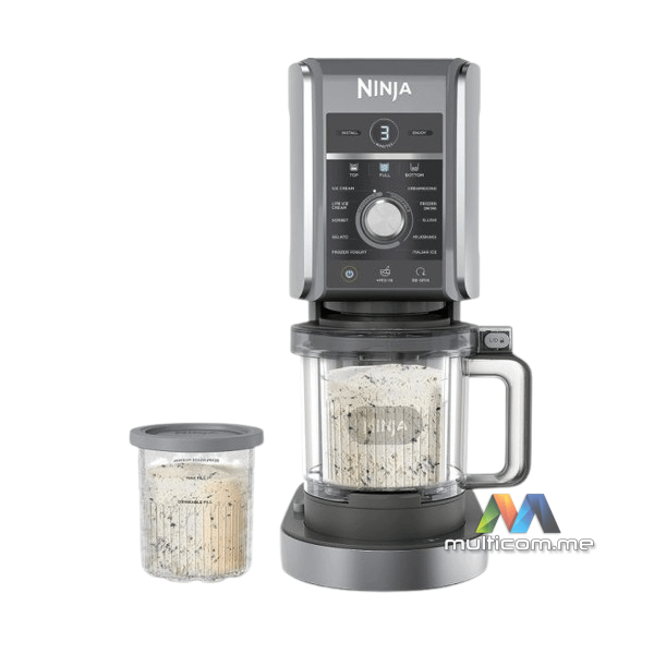 Ninja NC501EU CREAMi Deluxe 10-in-1 Ice Cream and Frozen Drink Maker aparat za sladoled │Boja: Crna / Srebrna │ Dimenzije: 42,4 x 30,5 x 21,4 cm │ Dužina kabla: 0,88 m │ Kapacitet: 3 x 709 ml │ Funkcije: Sladoled, Gelato, Sorbet, Light Ice Cream, Milkshake, Frozen jogurt, Frozen Drink, Slushi, Frappe, Mix-Ins │ Snaga: 800W │ EAN: 0622356283076