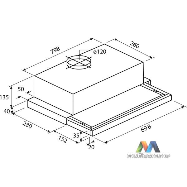 | Ostale karakteristike: | Halogeno osvetljenje (2 x 28 W). Ugljeni filter - opciono. Dva filtera za masnoću. |