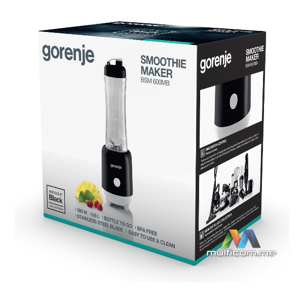 Gorenje BSM600MB blender │ Efikasan nož sa četiri oštrice │ AC motor │ Snaga 300W │ Kapacitet blendera 0.6l │ Gumirane protivklizne nožice │ Dimenzije 130x400x140 mm