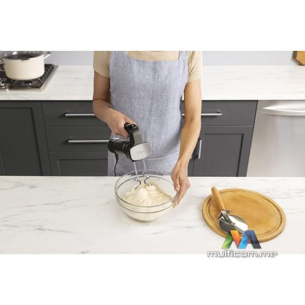 Ručni mikser: Umutite mekane kolače i smese za palačinke uz dve mutilice, ili koristite nastavke za testo za domaće hlebove. Funkcija postepenog pokretanja sprečava prskanje.