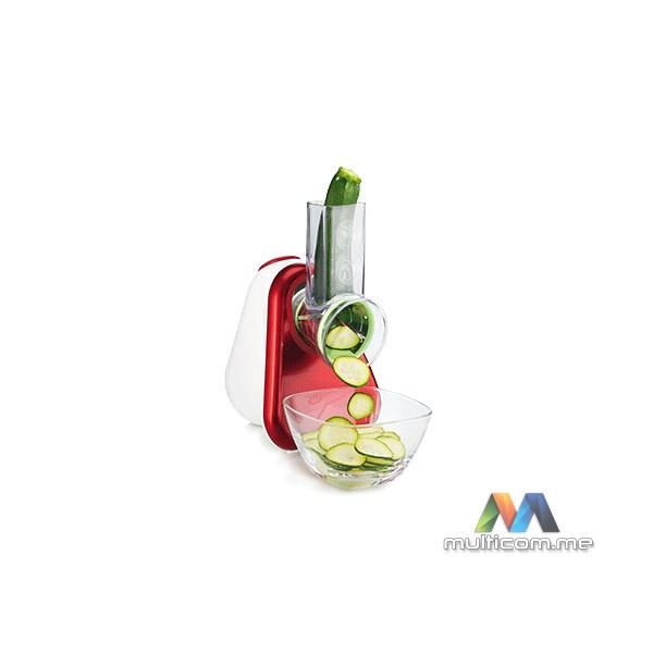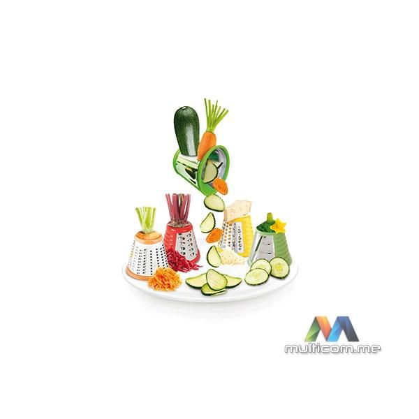 Fresh Express + sa 5 različitih konusnih dodataka omogućava vam da rendate, sečete na kriške, iseckate ili rebrasto nasečete povrće, voće, sir ili čokoladu direktno na tanjir, spremno za posluživanje! Dodaci su obojeni različitim bojama pomoći će vam da lako odaberete izaberete dodatak koji vam je potreban a takođe dodaju boje vašoj kuhinji. Osim toga, Fresh Express + ima veliki otvor za unos hrane a to znači da više ne morate unapred seći povrće!