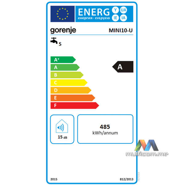 Gorenje MINI10-U bojler │ Energetski razred: A │ Zapremina: 10.9 l │ Snaga grijača: 1500 W │ Radni pritisak: 7.5 bar