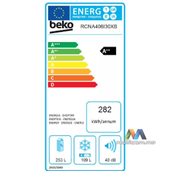BEKO RCNA406I30XB Kombinovani NeoFrost frižider sa zamrzivačem dole, A++ energetska klasa, Kapacitet frižidera 253 l, Kapacitet zamrzivača 109 l, Siva