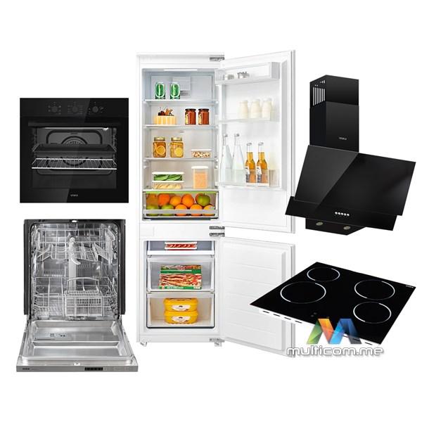 Vivax Ugradni set 2025 │ Staklokeramička ploča (BH-04MVC) + Ugradna pećnica (BO-606FTM G) + Kuhinjska napa (CHO-60CSD100T GB) + Ugradna mašina za posuđe (DWB-601252C) + Ugradni frižider No Frost (CFRB-248ENF)