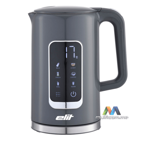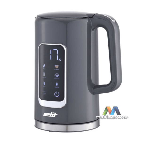 Elit coolTOUCH 1.7 Grey kuvalo za vodu │ Snaga: 1850-2200W │ Kapacitet: 1.7L │ 5 postavljenih nivoa temperature: 40-100°C │ 360° rotacijska baza │ Unutrašnjost: nerđajući čelik │ Automatsko otvaranje poklopca