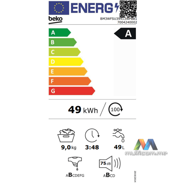 BEKO BM3WFSU39413WPBB1 Samostojeća veš mašina (9 kg, 1400 rpm) Energetski razred A, Dubina 54,6 cm, Boja bela, Inverter motor