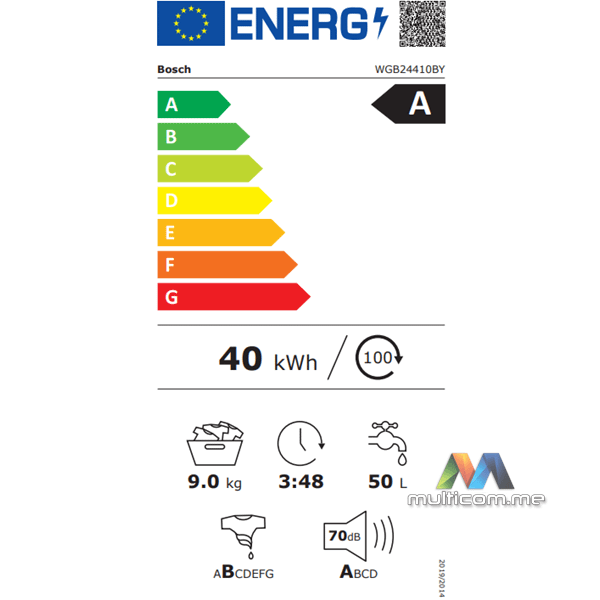 Bosch WGB24410BY Serija 8 Mašina za pranje veša, punjenje sprijeda 9 kg 1400 okr, Dimenzije 845 x 598 x 590 mm