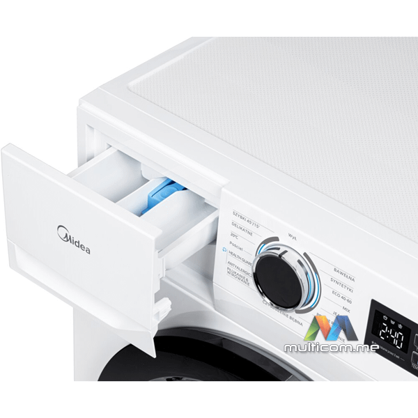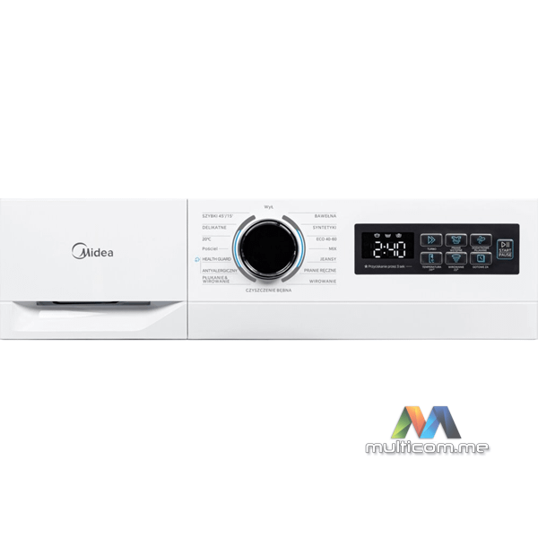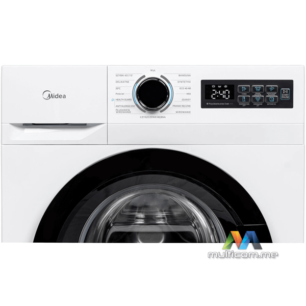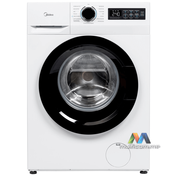 Midea MF110W60/W-HR veš mašina │ Kapacitet 6 kg │ Nivo buke 78 dB │ TurboWash funkcija │ Elektronski displej │ Maksimalna brzina centrifuge1000 obr/min │ Dimenzije (ŠxVxD): 59.5 x 85 x 40 cm │ Energetska klasa D