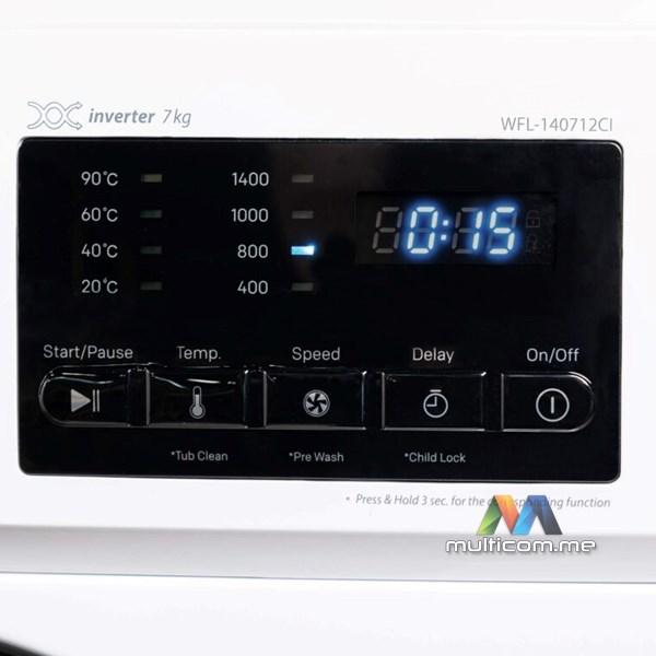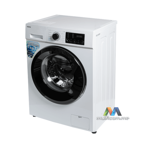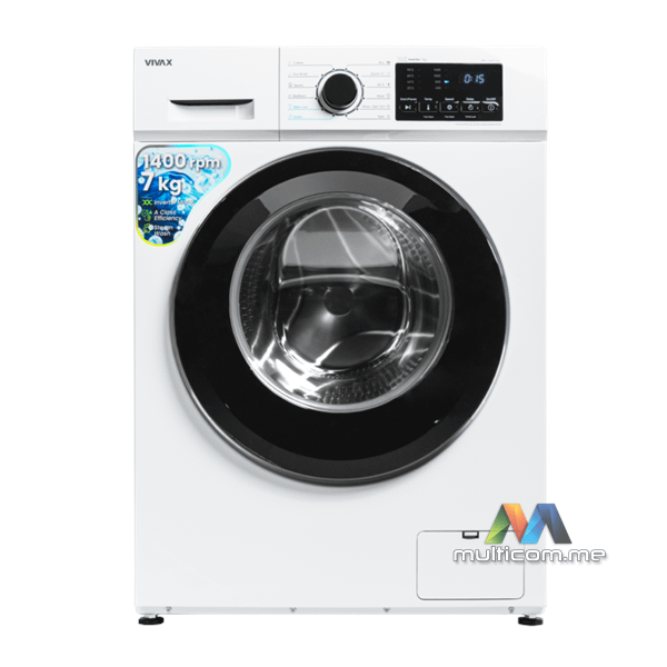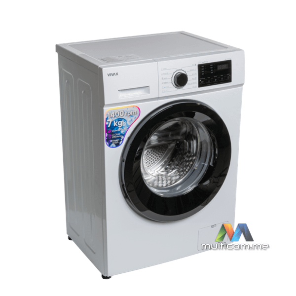 VIVAX WFL-140712CI mašina za pranje veša │ Kapacitet: 7 kg │ Obrtaji: 1400 rpm │ Energetska klasa: A │ Programi: 12 (pamuk, ECO 40°-60°, sportska odjeća, dječiji veš, brzo 15', itd.) │ Motori: Inverter │ Opcije: Odloženi start, Podešavanje temperature, Sigurnosna blokada │ Dimenzije: 59,5 x 85 x 48 cm │ Buka: 76 dB