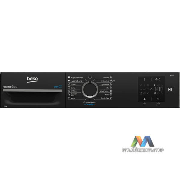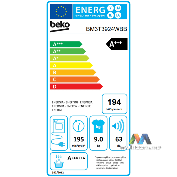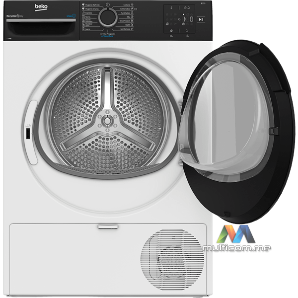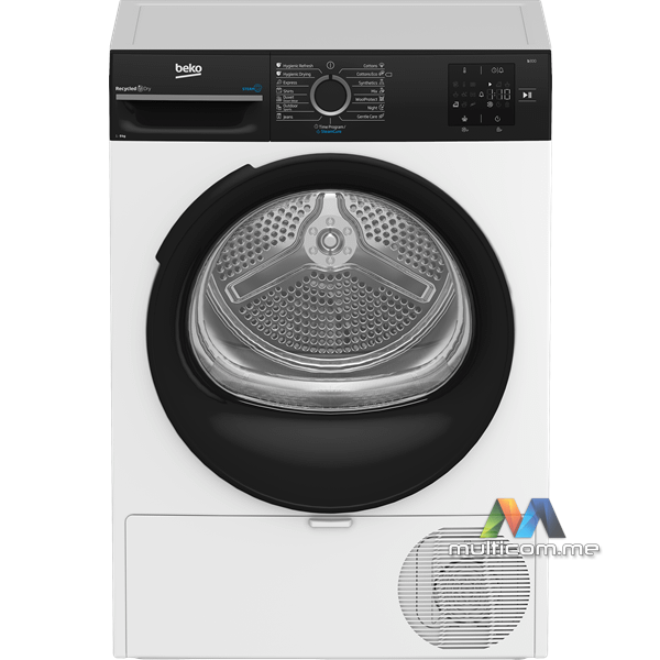 BEKO BM3T3924WBB mašina za sušenje veša │ Energetska klasa: A+++ │ Kapacitet: 9 kg │ Nivo buke: 63 dBA │ Broj programa: 15 │ Dimenzije: 84.6 x 59.8 x 67.2 cm │ Tehnologije: OptiSense®, IonGuard®, Steam Cure │ Bezbjednost: Dečiji zaključavanje, indikatori čišćenja