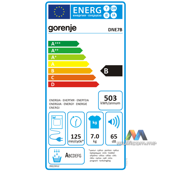 Gorenje SP22/220 DNE7B Mašina za sušenje rublja - Energetski razred: B, Punjenje za sušenje: 7 kg, Tip konstrukcije: Samostojeća, Širina: 600 mm, Visina: 850 mm