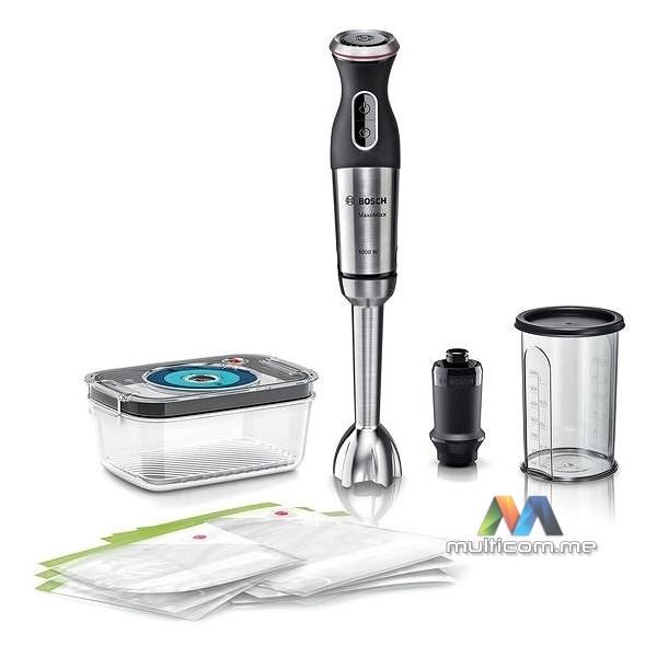 Bosch MaxoMixx (MS8CM61V1) Štapni mikser - Snaga 1000 W - Nerđajući čelik - Sistem vakumiranja - QuattroBlade Pro tehnologija - 12 podešavanja brzine i dodatna turbo funkcija - Automatsko mešanje pomoću vakuumskog sistema za odlaganje. Uživajte u svežoj hrani svaki dan