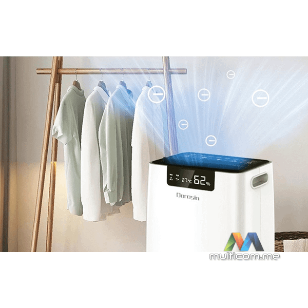Opremljen Panasonic kompresorom, rezervoarom za vodu od 7L, tri brzine ventilatora i brzim sušenjem odjeće. Uređaj uključuje "anion" funkciju prečišćavanja, dvostruko tajmiranje, ekran osjetljiv na dodir i automatsko isključivanje kada je rezervoar pun. Idealno rješenje za odvlaživanje, sušenje i prečišćavanje vazduha – jednostavno i efikasno.