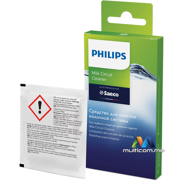 Sredstvo za čišćenje sistema za mleko može efikasno da ukloni ostatke mleka u sistemima za mleko aparata za espreso ili dodatka za pravljenje pene od mleka. Koristite isključivo Philips sredstvo za čišćenje sistema za mleko da biste osigurali maksimalni radni vek i bezbednost vaših Philips i Saeco aparata.