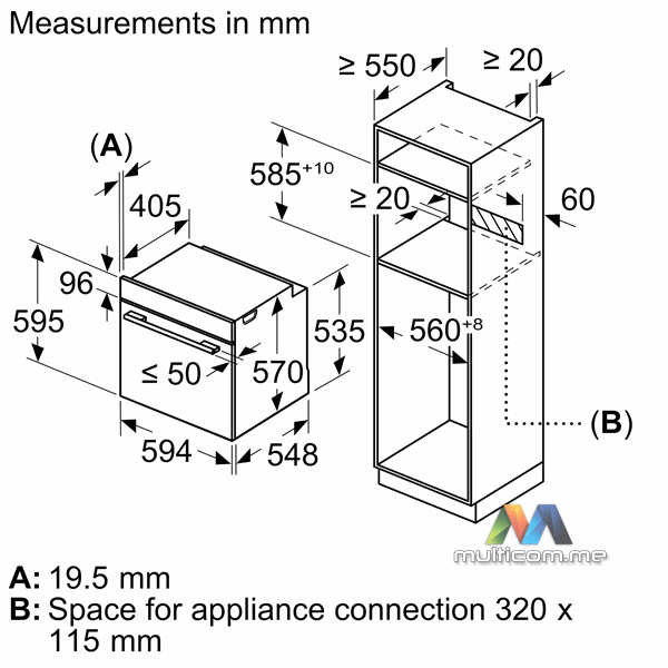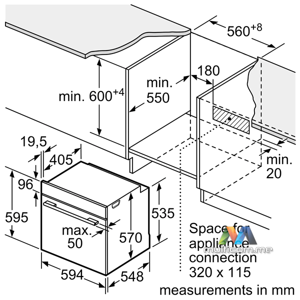 | Dubina prostora za ugradnju | 55 cm |