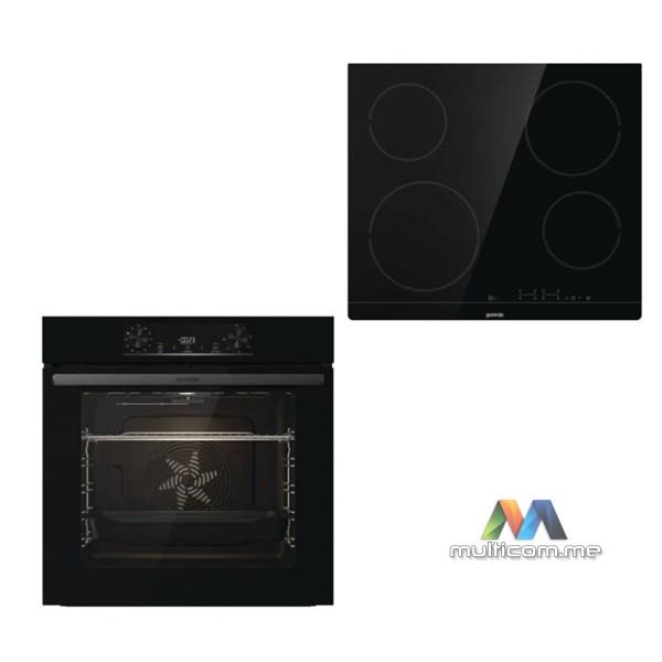 Gorenje Jump Aqua/C ugradni set pećnica (BO6735E02BK) + ploča (ECT641BSC) — Pećnica │ Zapremina: 77L │ Energetska klasa: A │ Maks. temperatura: 300°C │ Načini grijanja: FastPreheat, ventilator, GentleBake, FrozenBake, Pizza, infra grijači │ Ugradne dimenzije: 560–564 x 590–600 x 550 mm — Ploča │ Tip: Staklokeramička ploča │ Zone: 4 brzozagrijavajuće zone (2300W, 1800W, 2x1200W) │ Funkcije: StayWarm │ Ugradne dimenzije: 560 x 70 x 490 mm