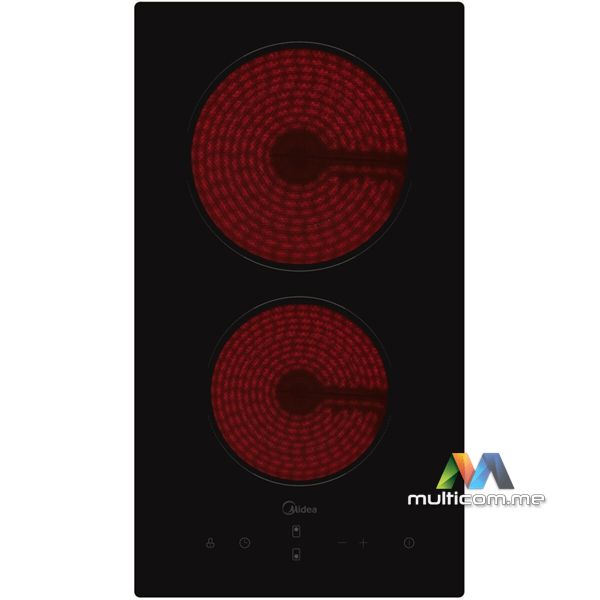 Midea MCH300D111K0 ugradna ploča / Način upravljanja: senzorsko / Boja: crna / Materijal ploče: staklokeramika / Tip ploče: nezavisna / Broj grejnih zona: 2 / Širina: 28,8 cm