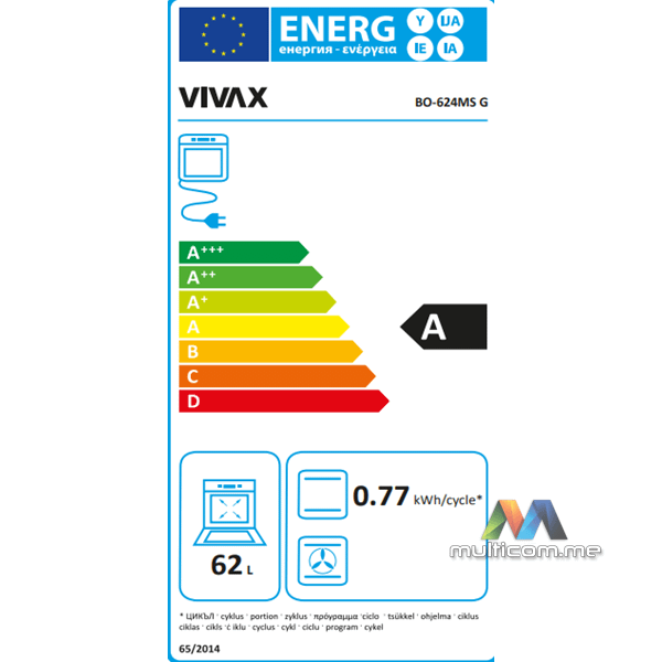VIVAX ugradna pećnica BO-624MS G energetske efikasnosti A klase omogućava brže i jednostavnije pečenje. Pećnica ima 3 programa + osvetljenje pećnice koje olakšava upotrebu. Ako želite prefinjen dizajn, a ne želite previše da komplikujete prilikom pečenja – tu su klasični program zagrevanjem gornjeg i donjeg grejača, kao i samo gornji ili samo donji grejač.