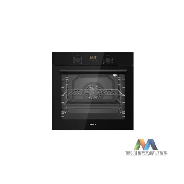Vivax BO-806BFTM G ugradna pećnica Volumen rerne: 80 L, Tip rerne: Ventilatorska, Broj programa: 6, Snaga: 2300 W, Temperaturni raspon: 40°C-240°C, Crno staklo, Mehanički tajmer, Child lock, Pop-up gumbi; Energetski razred: A, Dimenzije (š/v/d): 59,5 x 57,5 x 59,5 cm