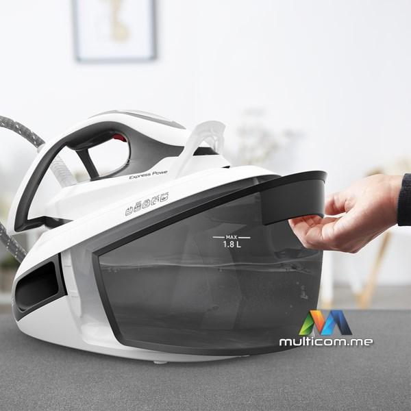 Tefal Express Power SV8130E0 parna stanica │ Kontinuirani ispust pare 125g/min │ Dodatni udar pare 450g/min │ Pritisak pumpe 6.5 bara │ Demontažni kolektor kamenca │ Rezervoar za vodu 1.8L │ Vertikalno peglanje