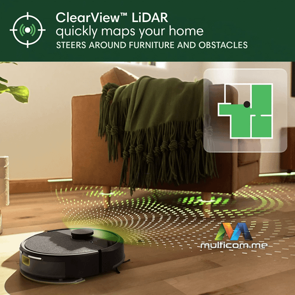 ClearView™ LiDAR brzo mapira vaš dom, izbjegava prepreke i čisti u urednim redovima, čak i u mraku.