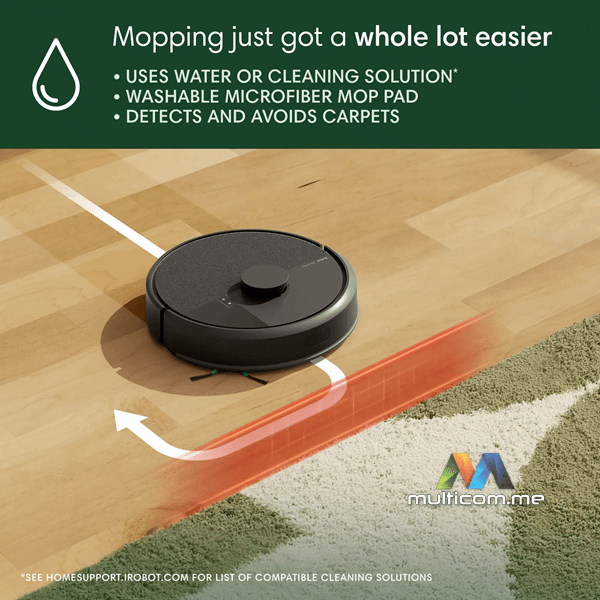 IROBOT ROOMBA COMBO 105 Black robot usisivač │ ClearView LiDAR za navigaciju │ Automatsko izbjegavanje tepiha tokom brisanja │ Prilagodljivo čišćenje │ Usisvanje i čišćenje │ Roomba Home aplikacija