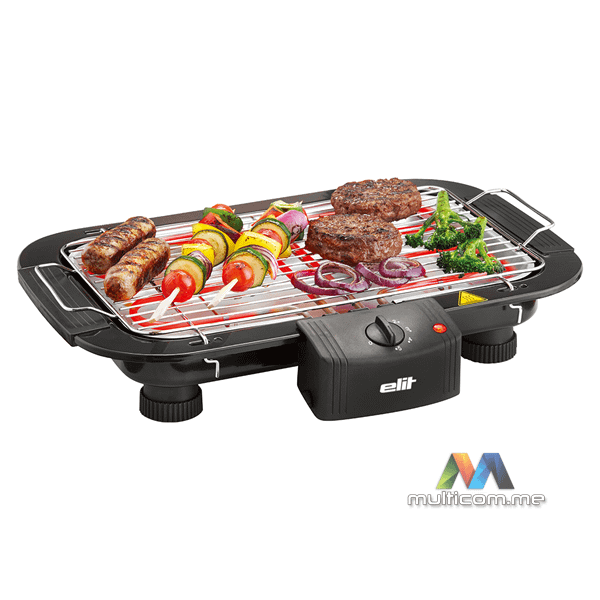 Elit BQ-6200 2000W električni roštilj │ Snaga 2000 W │ Rešetka 38×22 cm │ Podesiva visina │ Termostat │ Posuda za masnoću │ Inox grijači │ Kabl 1 m