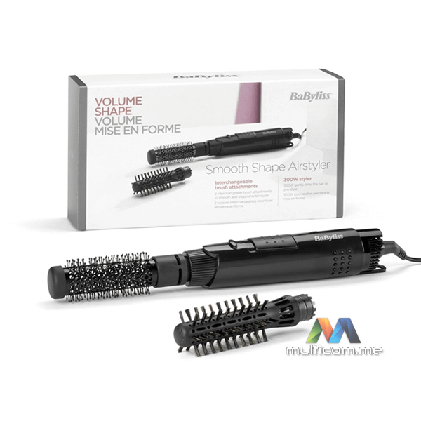 BaByliss Smooth Shape AS86E fen četka │ Snaga 300 W │ 2 nivoa temperature │ Nastavak za mekim čekinjama 19 mm │ Keramički nastavak 25 mm │ Dugme za hladan vazduh │ Rotirajući kabl 1,8 m