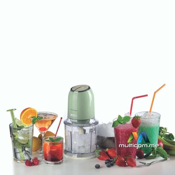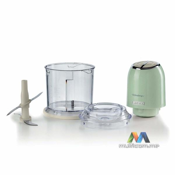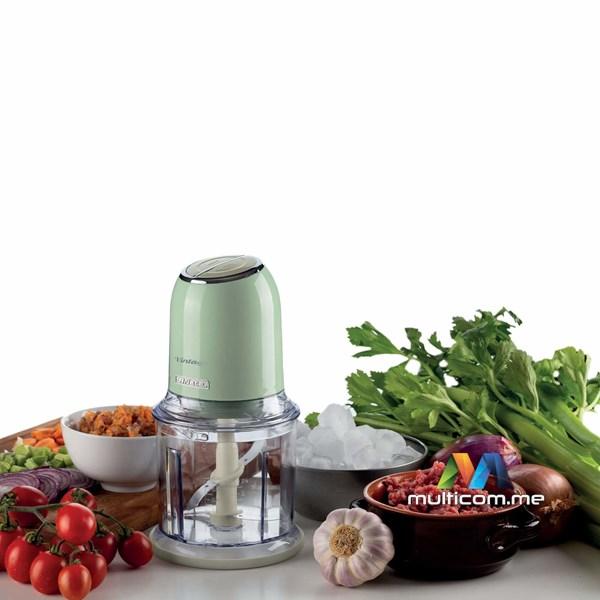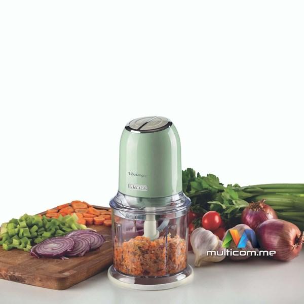 Vintage linija Ariete proizvoda obogaćena je neizostavnim aparatom za tvoje recepte u kuhinji: sjeckalicom sa retro linijama i mekim pastelnim bojama, savršenom za unošenje daška stila i funkcionalnosti u tvoju kuhinju. Zahvaljujući snazi od 400 W i 4 oštrice od nerđajućeg čelika, Vintage sjeckalica ti omogućava da usitniš bilo koji sastojak za svoje recepte – od povrća do mesa, sira, hljeba, suvog voća pa čak i leda. Dvije brzine, kojima se upravlja pomoću dva dugmeta na vrhu sjeckalice, omogućavaju ti da grubo ili fino isjeckaš namirnice, dok neklizajuće nožice obezbjeđuju maksimalno prijanjanje aparata za radnu površinu.
